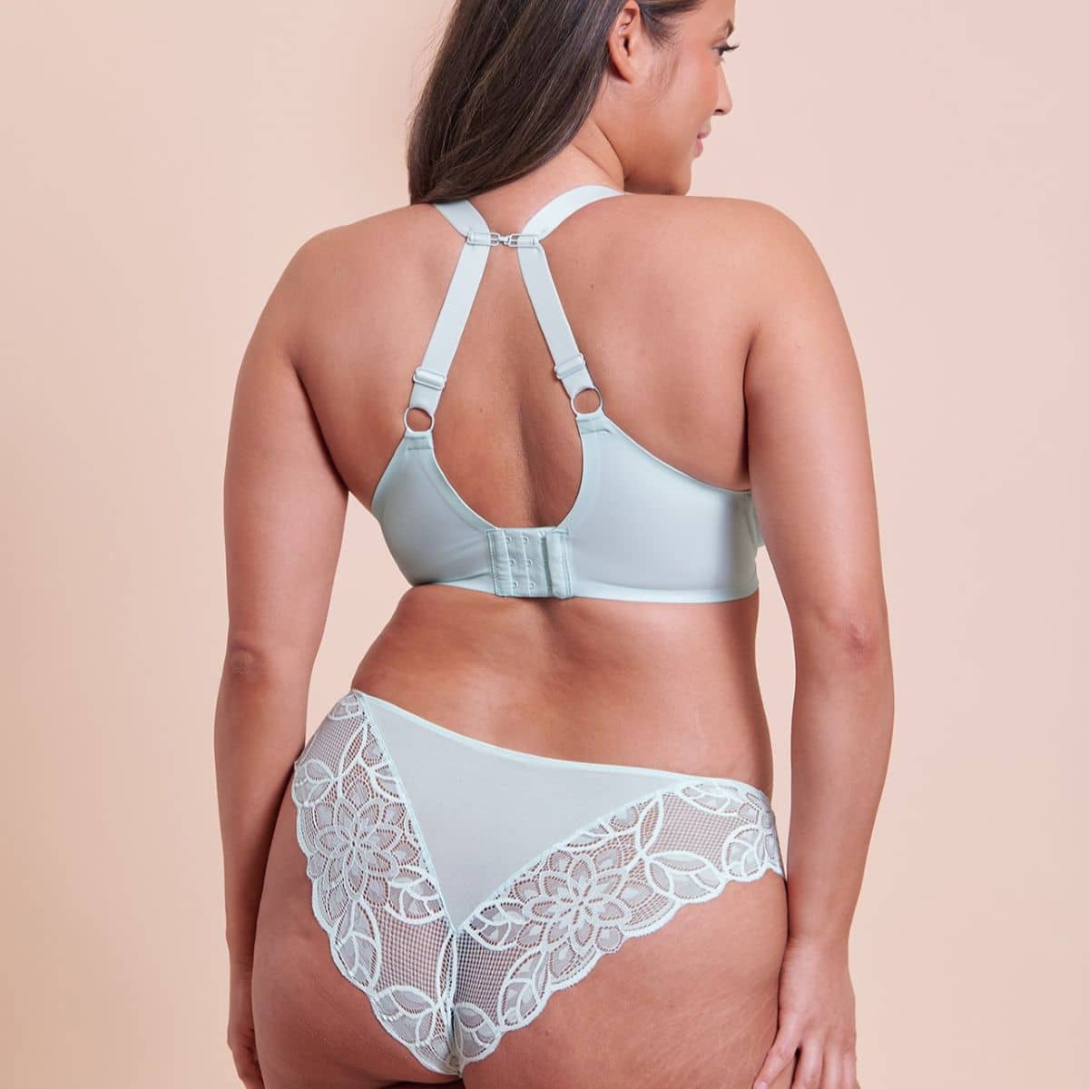 The feather-light Smoothie Spacer T-Shirt bra is our super lightweight, semi-sheer moulded spacer cup that fits like a second skin. Lightweight smooth, moulded spacer cups create a beautiful curvaceous shape. Racer back option with J hook.
