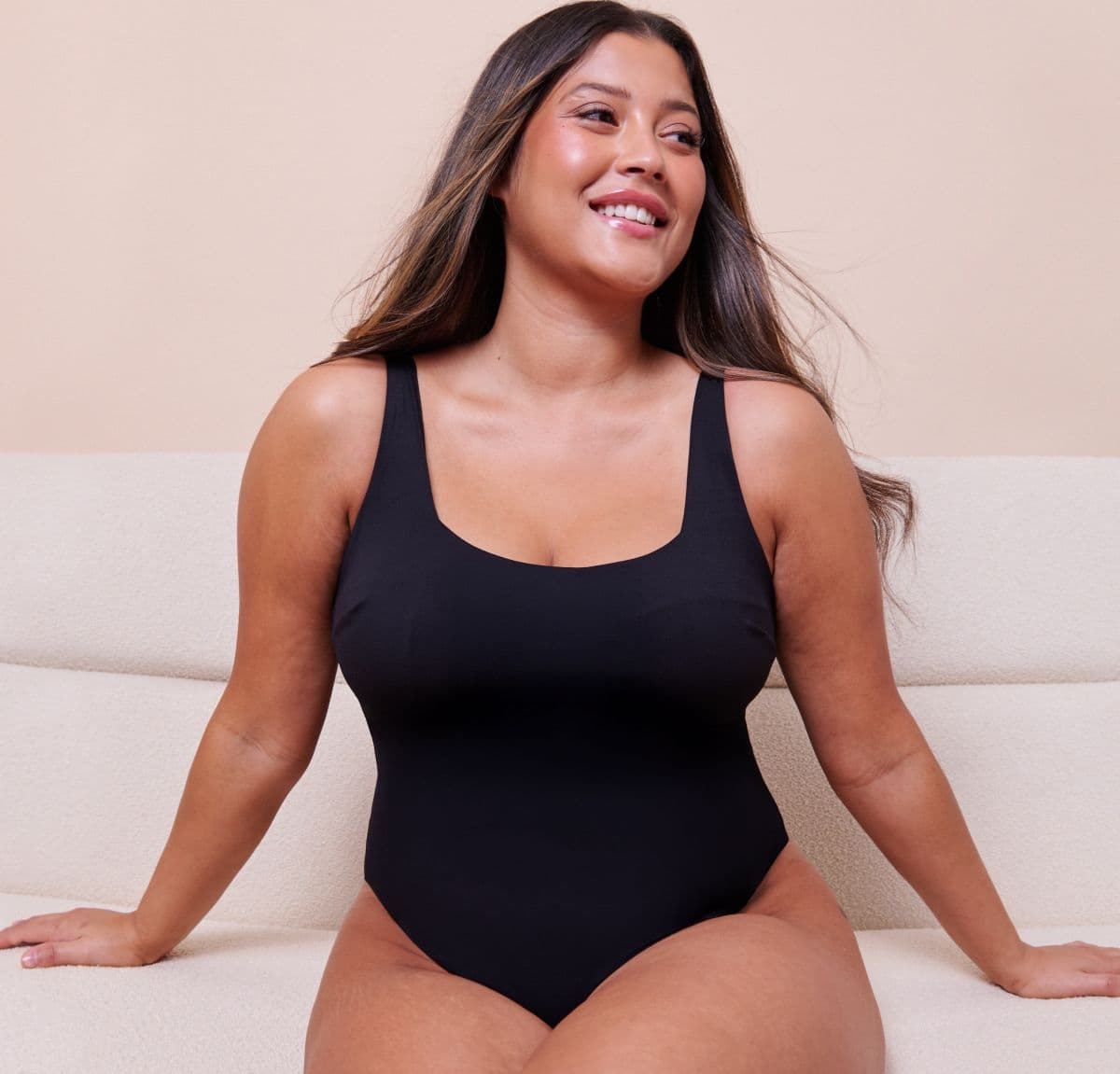 With hidden internal stretch cups, the smoothie secret support body offers support and an endlessly flattering shape. Bonded edges on the leg offer a clean and modern finish, whilst the scooped open back and thong make it perfect for outerwear solutions.