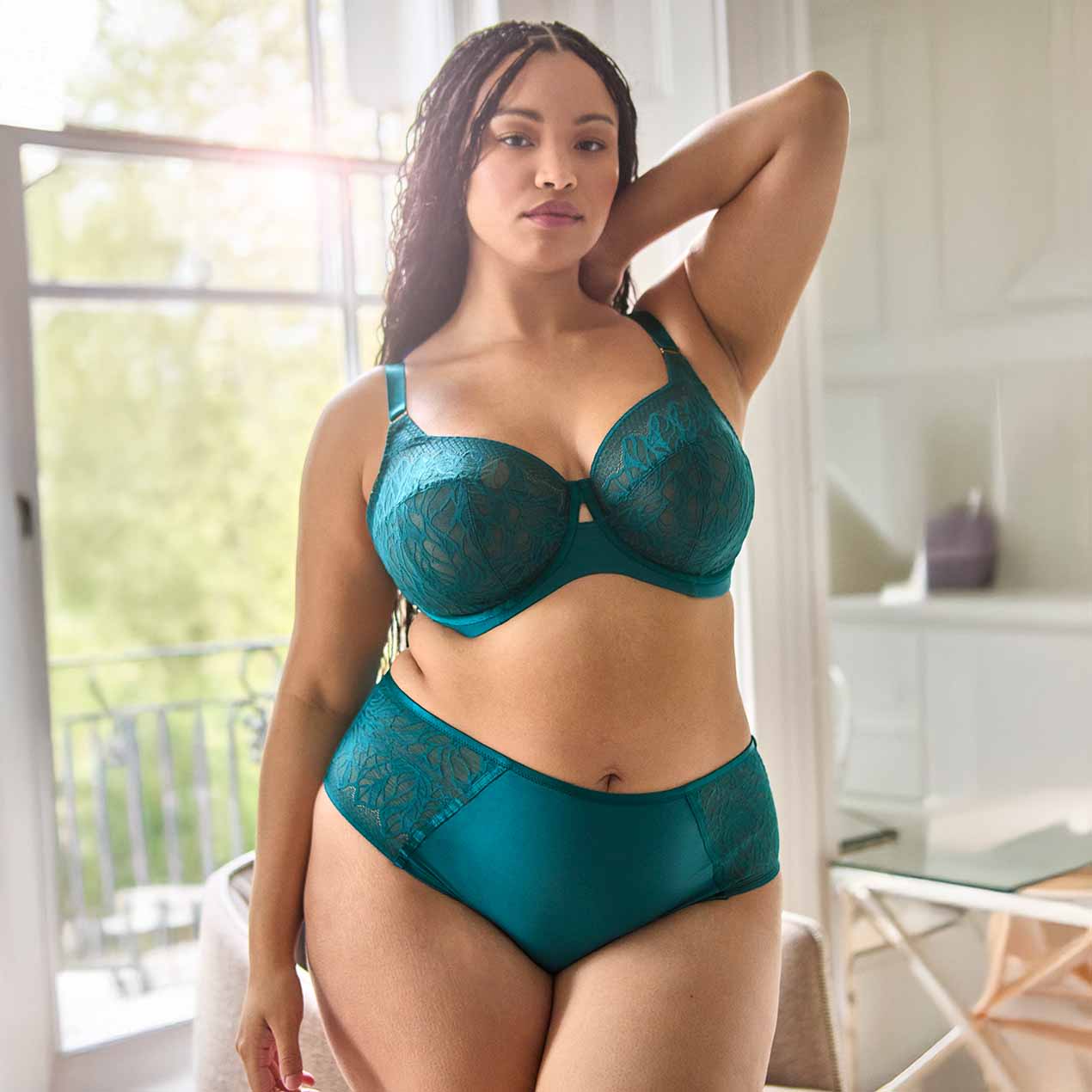 Experience everyday luxury with the Sophia Deep Brief, featuring a striking floral and geometric design on soft stretch lace that comfortably moulds to your body for ultimate confidence