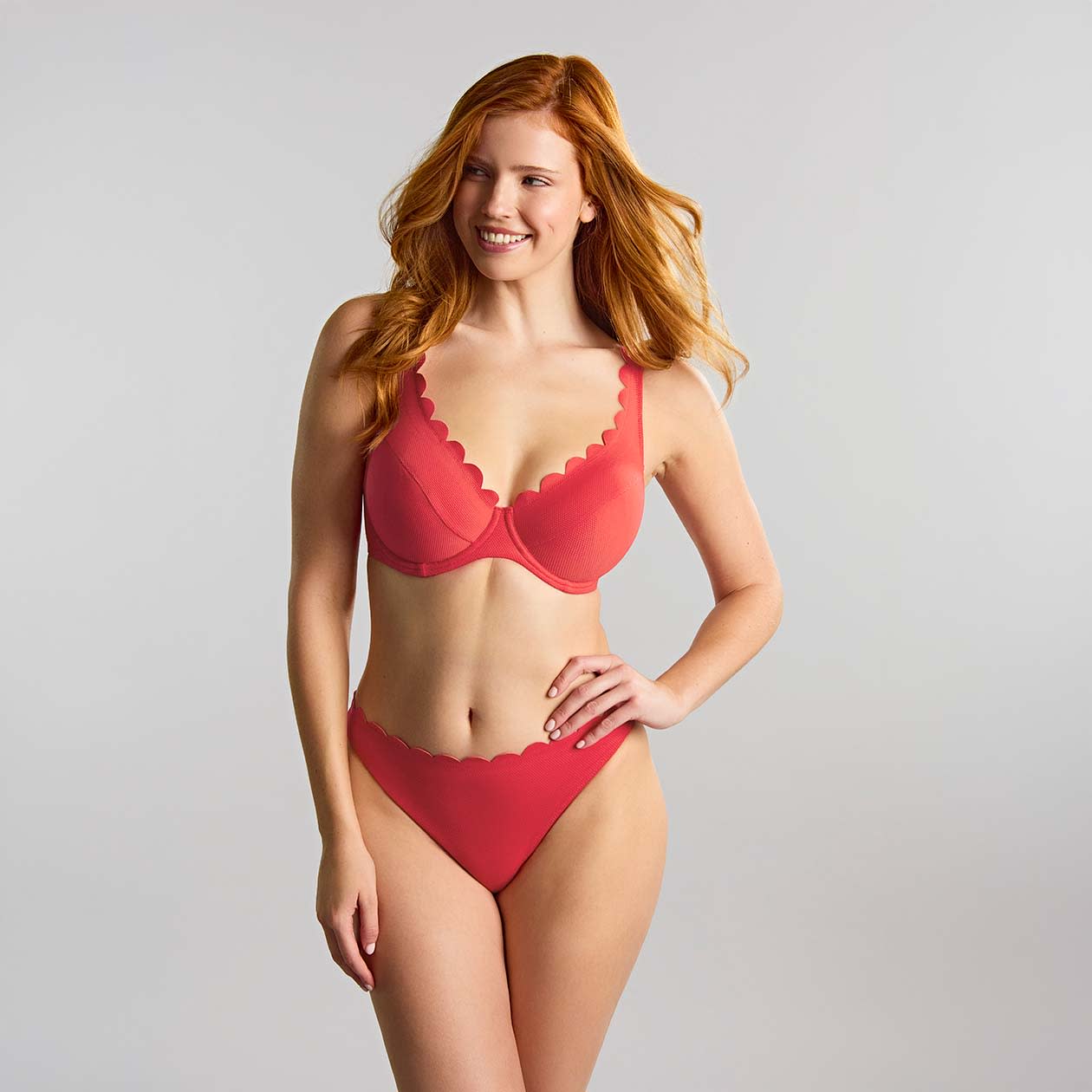 The Spirit Classic Brief with scalloped edges perfectly complements the Lauren Plunge Bikini Top, allowing you to step out in style this summer!
