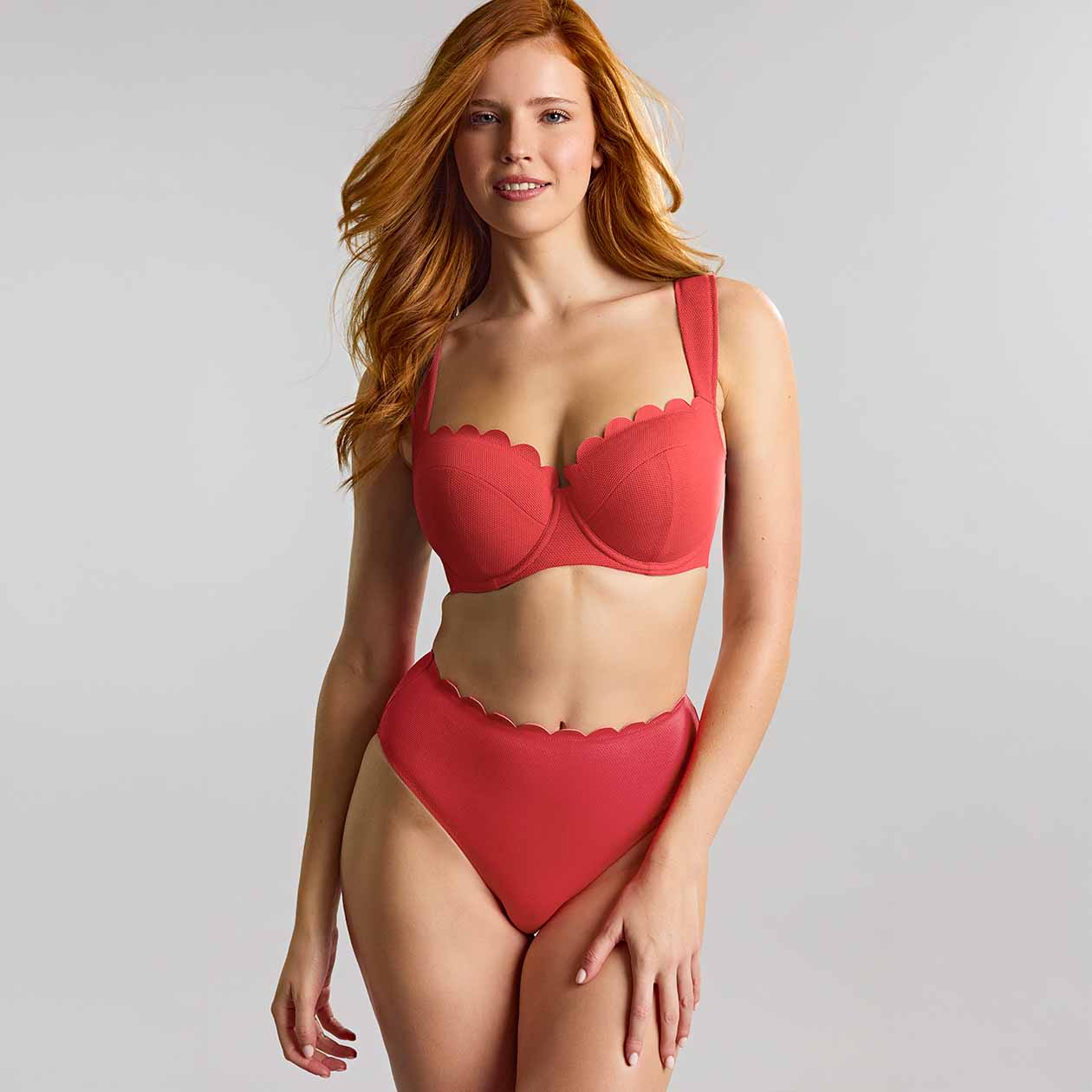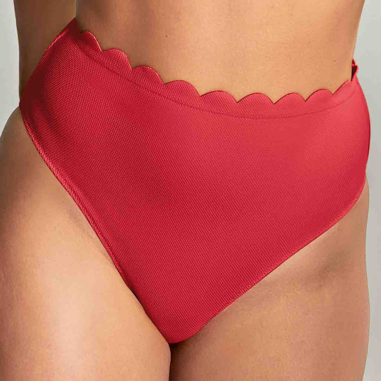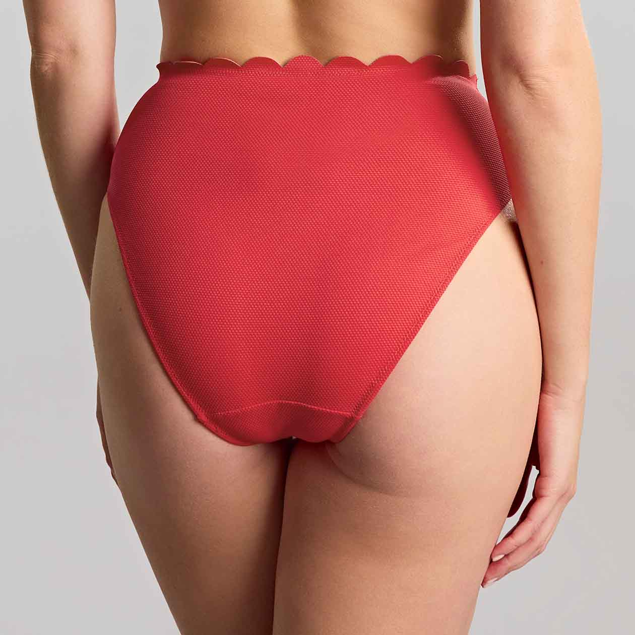 High waist style. Gathered detail.