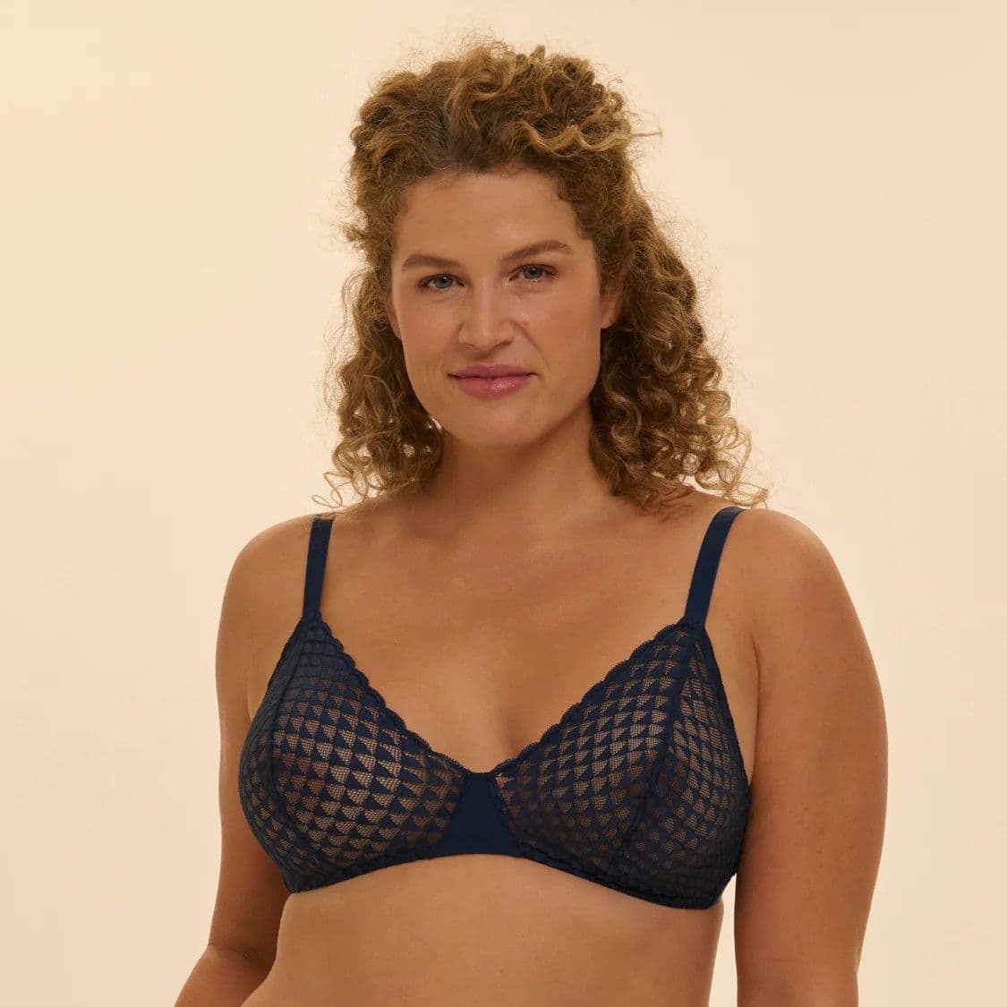 The Subtile Wireless Triangle Bralette defines your body by utilizing control mesh and responsive French lace. Comfort meets curves in this modern piece of lingerie. The cups give a natural shape, defined by vertical seams, while wires on the side panels of this bra sculpt your figure. Along your neckline, a lace trimming kisses your skin, and in the center of each cup, a knitted fabric juxtaposes against the intricate lace, providing a chic look and added support. Comfort is adorned with a lace ballet back featuring wide elastic that draws three sturdy hook fasteners together. Multiway straps make this modern bra suitable for the outfit of your choice – simply leave the straps in the classic position or crossover for added invisibility.