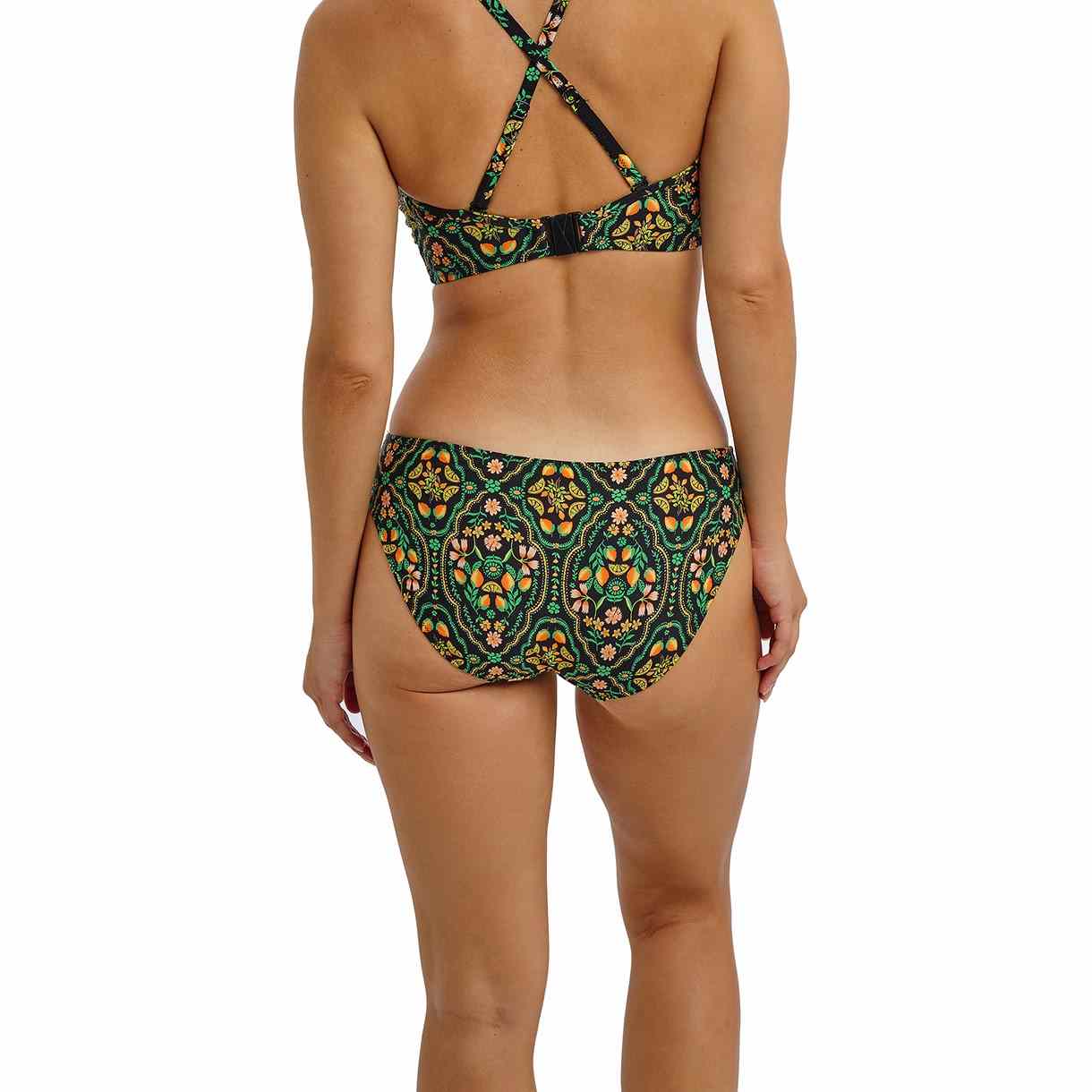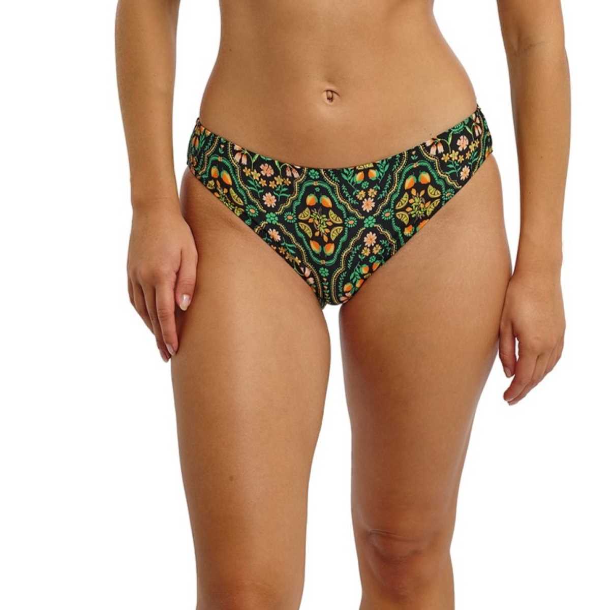 Soak up the sun in Sunset In Seville, Freya’s vibrant new print inspired by Andalusian tiles and citrus groves. Featuring jade, zesty, and golden tones on a black base with touches of gold leaf, this bikini brief sits on the hips, flatters the leg, and offers good bottom coverage for a comfortable, stylish fit.