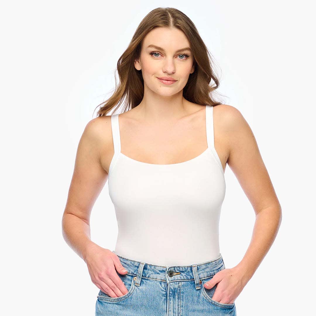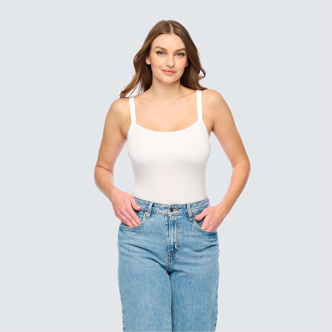 Talco Curvy Camisole is sleek and modern, this cami is crafted from— soft, breathable, and smooth against the skin. It features a supportive shelf bra with powermesh slings for all-day comfort and lift, designed specifically for women with a fuller bust and smaller band. The pullover style includes wide, adjustable straps for a customized fit. Hand wash in cold water and avoid tumble drying to maintain its shape and softness.